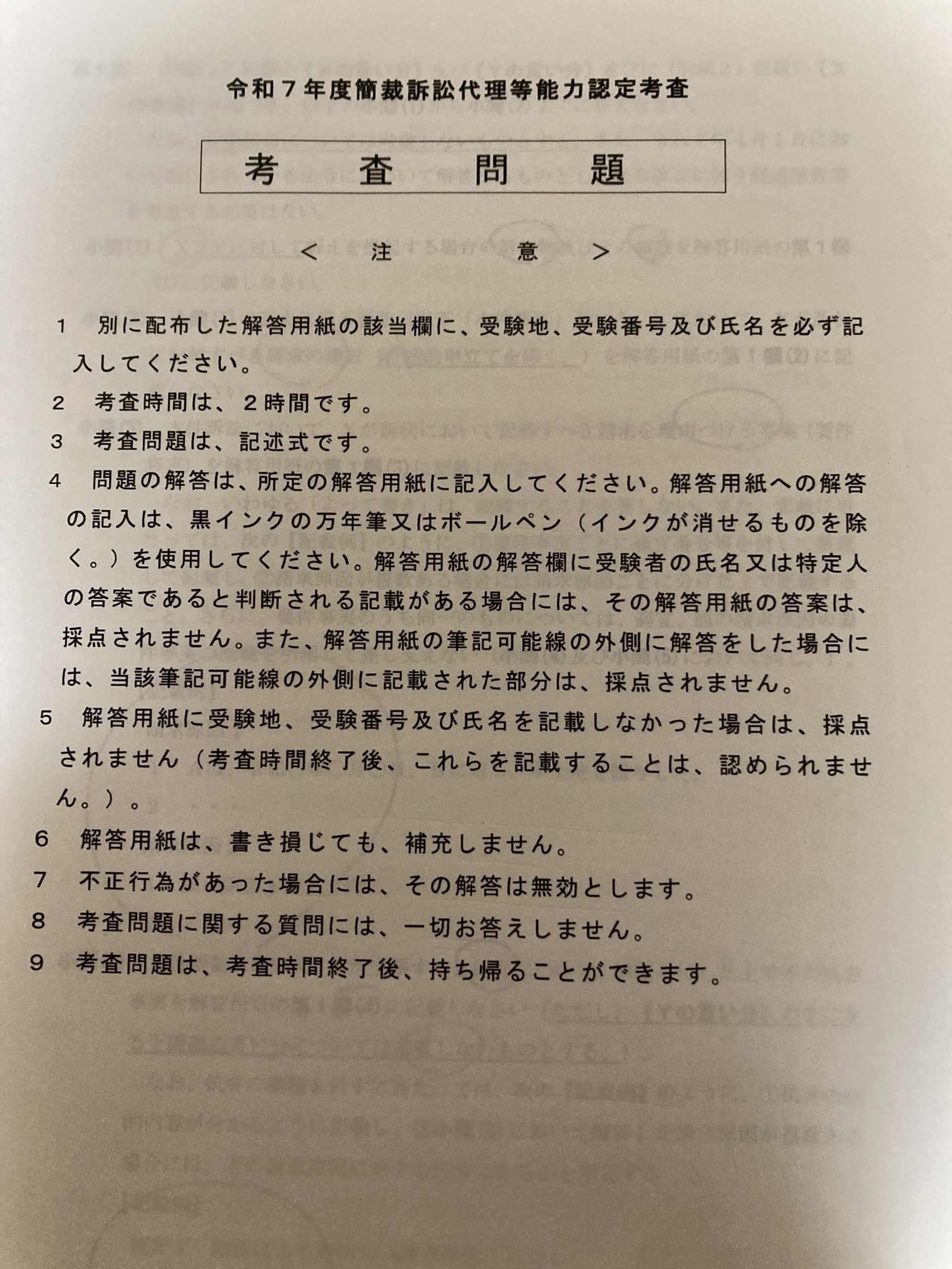 長かった受験生活。簡易裁判所で取り扱う訴額140万円以下の民事事件において、訴訟代理人として活動するための資格(簡裁代理権)を取得するための試験(認定考査)が、本日終了しました。
